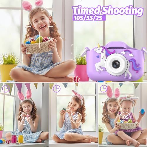 - Cartoon Case - This kids camera comes with a cute unicorn case. Which will provide effective anti-fall, make the toy camera safer and more durable. In addition, the package includes a durable lanyard for kids to hang the camera on the neck.