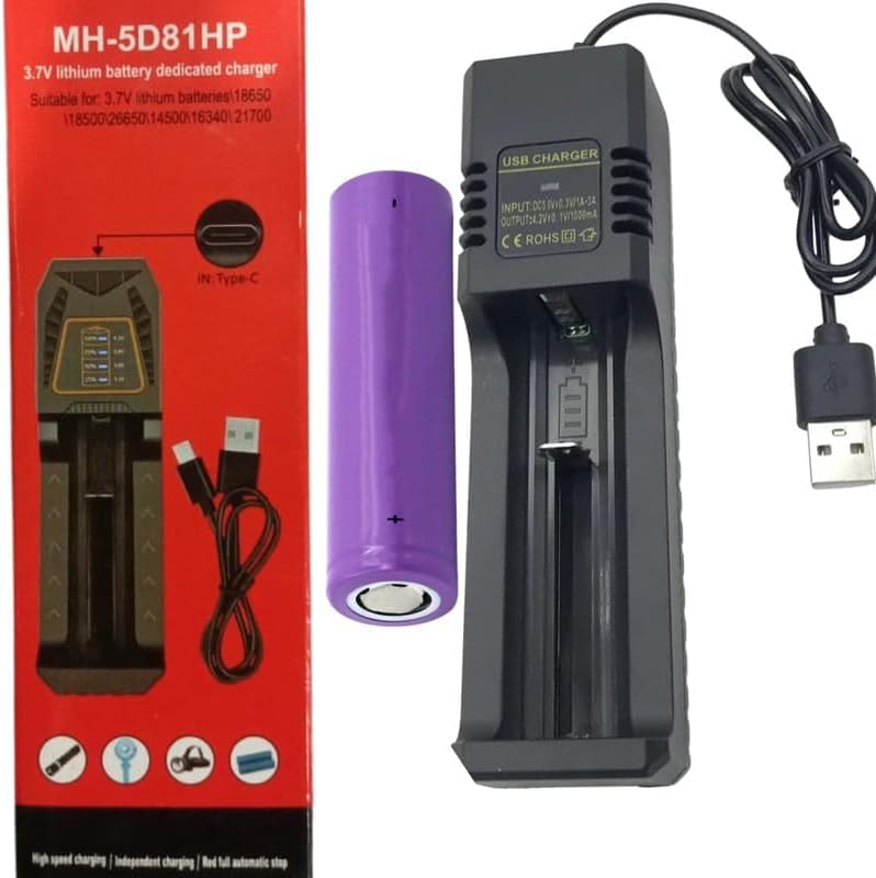 Generic - MH-5D81HP ليثيوم ارجواني + شاحن USB ذكي - حزمة 18650 قابلة لاعادة الشحن 3.7 فولت، شحن امن، شاشة LED، حل طاقة صديق للبيئة