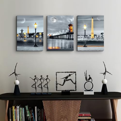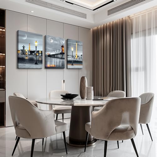 MHARTK66 - لوحات جدارية من مهارتك 66، طباعة فنية لغرفة الطعام باللون الأسود والأبيض والأصفر، مقاس 30.48 × 40.64 سم، مجموعة من 3 قطع