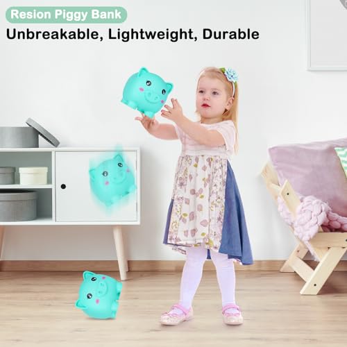 - 🎁【مادة آمنة وغير قابلة للكسر】مصنوعة من الراتنج الصديق للبيئة، حصالة النقود للأطفال الصغار خفيفة الوزن وغير قابلة للكسر، ويمكن للطفل الصغير حملها أو أخذها بسهولة. لن تنكسر أو تتلف إذا أسقطها طفلك على الأرض، فهي أكثر متانة من الحصالة البلاستيك العادية.