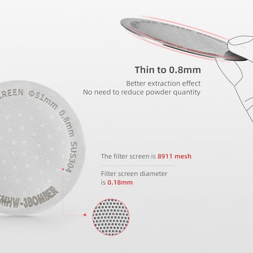 MHW-3BOMBER - شاشة قرص بقطر 51 ملم وسمك 0.8 ملم من إم إتش دبليو-3بومبر، فلتر قهوة من الفولاذ المقاوم للصدأ 180 ميكرومتر، مصفاة إسبريسو لسلة الفلتر، فلتر إسبريسو معدني قابل لإعادة الاستخدام، موديل: