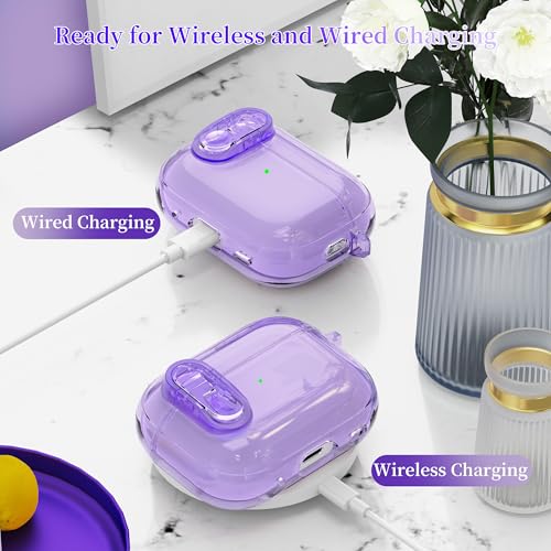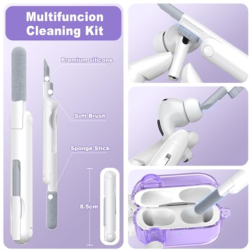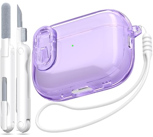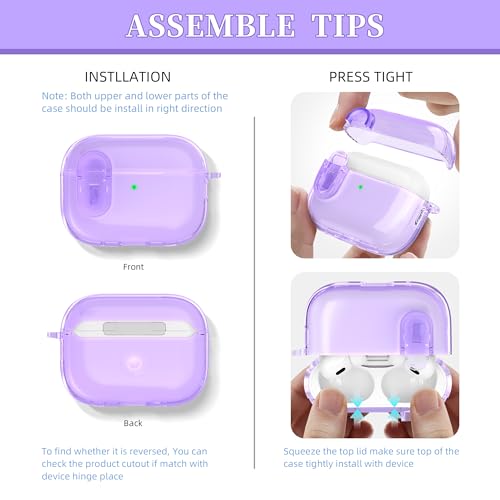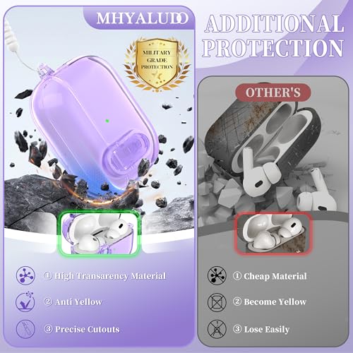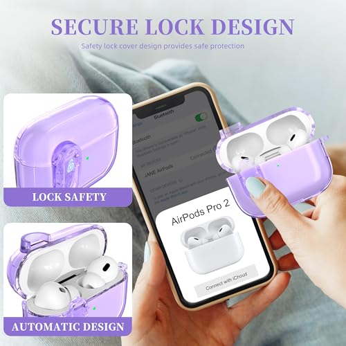 MHYALUDO - Airpods Pro 2nd Generation Case with Secure Lock, Compatible with Airpods Pro Case 2nd/1st Gen (2023/2022/2019), Clear Soft TPU Transparent Military Grade Shockproof Case, Clear Purple
