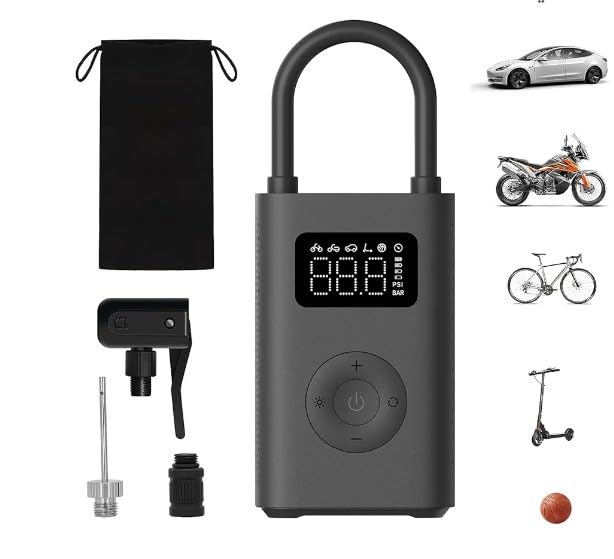 Generic - ضاغط هواء كهربائي محمول ثنائي الأبعاد من مي ميجيا، للسيارة والموتوسيكل والدراجة الهوائية حتى 10.3 بار، 3-150 رطل لكل بوصة مربعة، 6 أوضاع مختلفة بإيقاف تلقائي، بطارية 2000 مللي أمبير/ساعة، USB-C، ليد