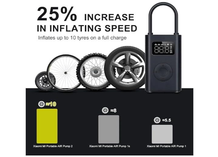- ضاغط الهواء الكهربائي المحمول من ميجيا: بالمقارنة مع طراز مضخة ضاغط الهواء 1S، فإنه يضيف وضع سكوتر جديد ومحول فوهة هواء سريع التوصيل للتركيب السريع دون اتساخ يديك. تزداد سرعة النفخ بنسبة 25%، ويتم تقليل نفخ إطارات السيارة من 9 دقائق و56 ثانية إلى 8 دقائق، ويزداد نطاق السفر بنسبة 25% ويزداد عدد الإطارات المنفوخة باستمرار من 8 إلى 10.
