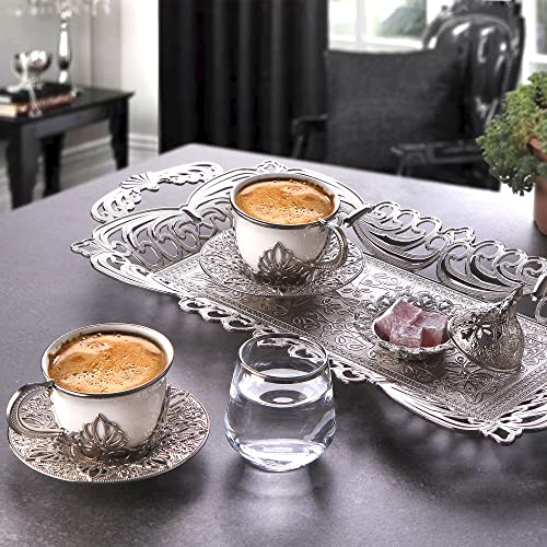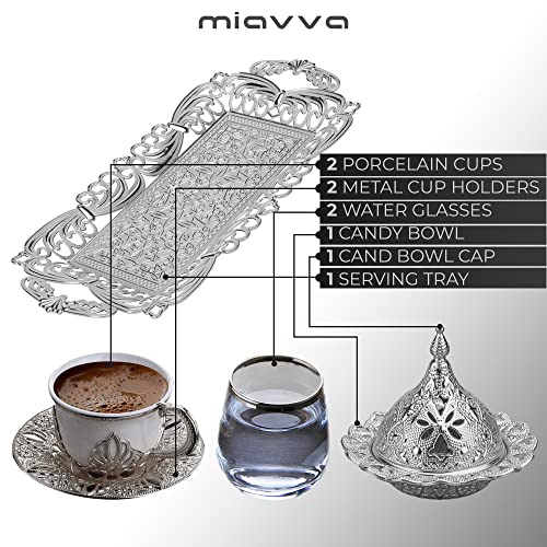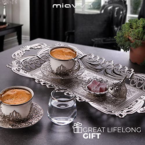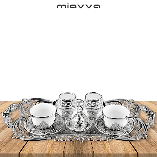 miavva - Turkish Coffee Set - Turkish Coffee Espresso Set (9 Pieces) (Silver)