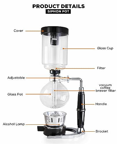 MIBRU - MIBRU Syphon Coffee Maker Tea Syphon Manual Tea Maker Tabletop Japanese Style Siphon Glass vacuum pot Manual coffee machine filter مكينه قهوه وشاي
