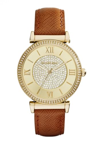Michael Kors - Michael Kors Catlin Women's Champagne Crystal Pave Dial Leather Band Watch - MK2375