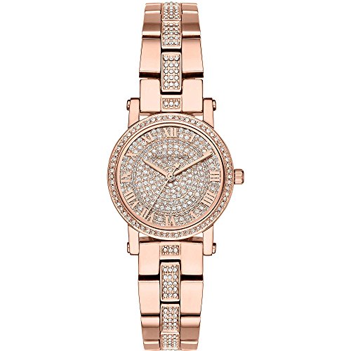 Michael Kors - ساعة مايكل كورس فيس بيتيت نوري للنساء بمينا فضي وسوار من الستانلس ستيل - MK3776, ذهبي وردي، انالوج بعقارب