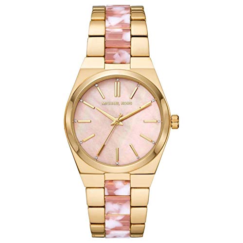 Michael Kors - ساعة يد بنظام عرض انالوج بتصميم دائري من الفولاذ المقاوم للصدأ للنساء من مايكل كورس - لون ذهبي، MK6650