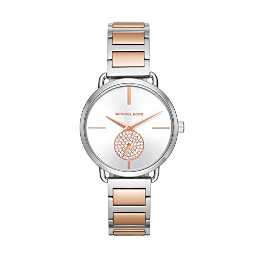 Michael Kors - Michael Kors Women's Portia Three-Hand Stainless Steel Watch, Silver/Rose gold,