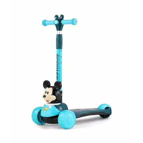 Dream Land - Mickey Mouse Kids Scooter, Turquoise and Black, 3-Wheel Design, Adjustable Height, Foldable Construction, for Children