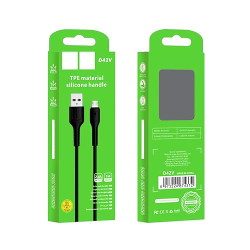 Generic - Micro USB Charging Cable D42V, Fast Charging 2.4A, Pure Copper Core, TPE Material, Anti-Bending,1m, Black