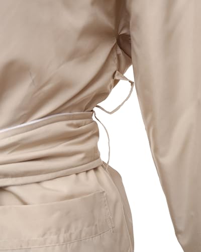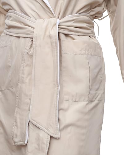 Gazal - Microfiber Bath Robe for Unisex, Large, Beige/White