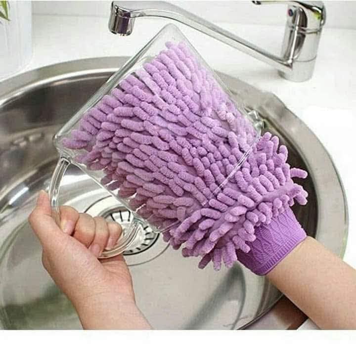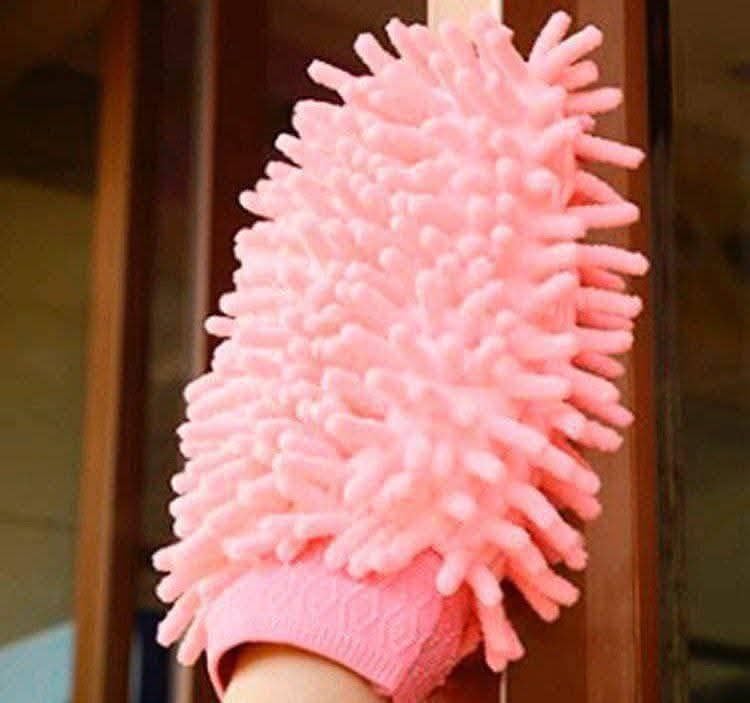 Generic - قفاز تنظيف مايكروفايبر للسيارات والمنزل، قابل للغسل،لون وردي