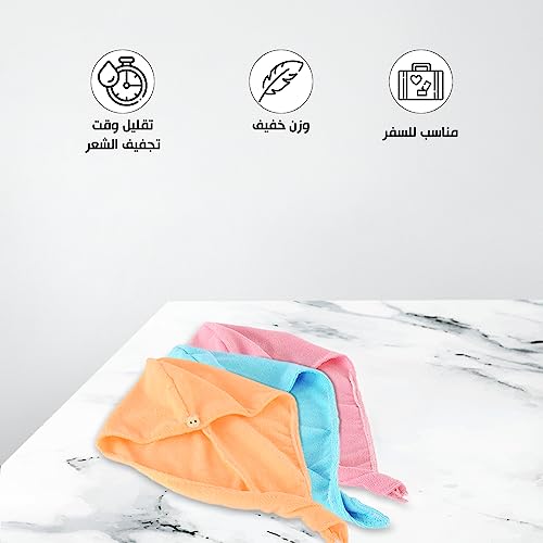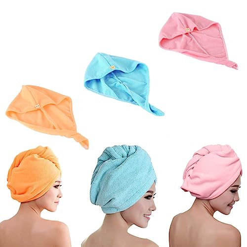 Generic - Microfiber Hair Dry Cap Colorful Super Absorbent Quick Dry Hair Towel for Women Long Hair Wrap Cap Bathroom Showering, Quick Dry, Hair Turban for Wet & Curly Hair (Pink & Blue & Orange)