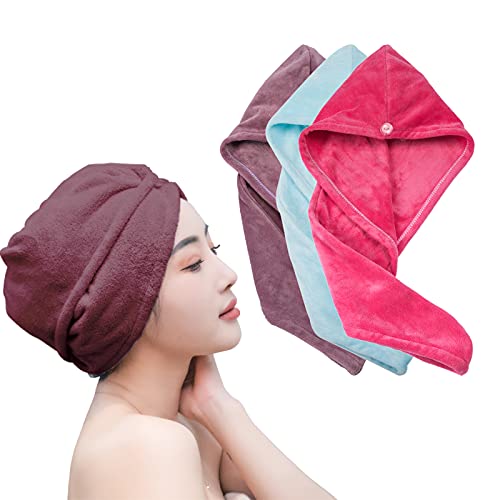 MANTOONE - منشفة شعر مايكروفايبر، 3 عبوات من تربون الشعر للشعر المبلل، مناشف تجفيف الشعر للشعر المجعد للنساء، مضادة للتجعد، فائقة الامتصاص وسريعة الجفاف، عمامة للشعر بلون ارجواني وازرق وزهري، مقاس واحد