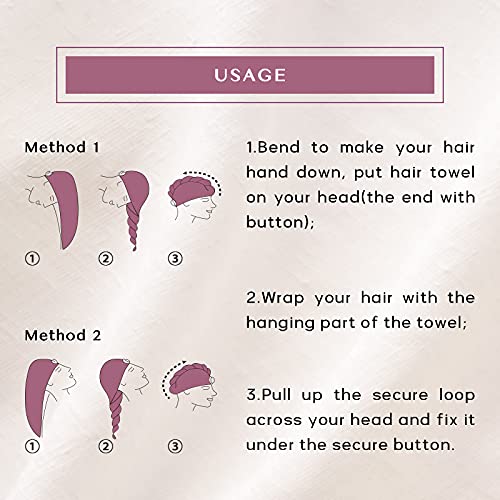 - [احمِ شعرك لتكون أكثر صحة]: ملمس فائق الامتصاص وناعم يمكن أن يجفف شعرك بشكل أسرع ويقلل من الحرارة أو الاحتكاك غير الضروري بواسطة مجففات الشعر، ويقلل من خشونة الشعر وتقصفه، مما يساعد بشكل رائع للحصول على شعر أكثر صحة ونعومة وحيوية