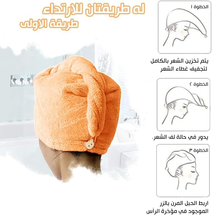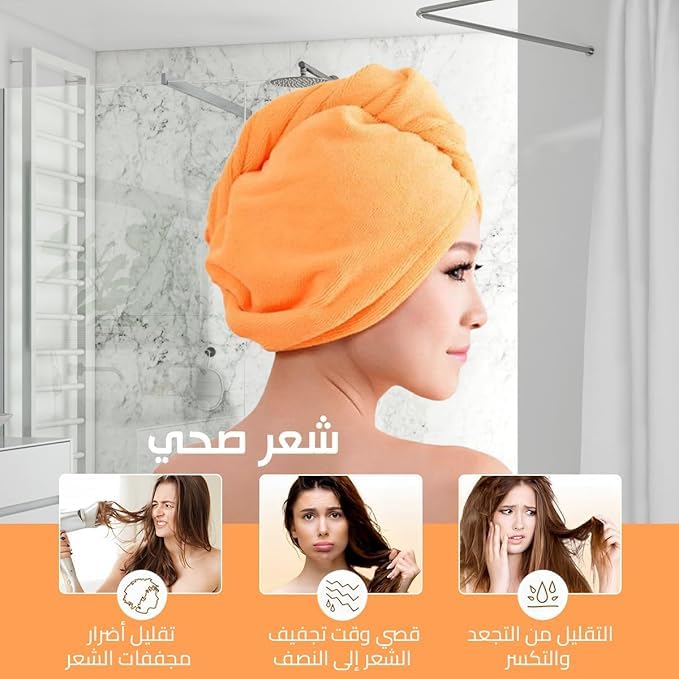 Generic - قبعة تجفيف الشعر من المايكروفايبر ملونة فائقة الامتصاص وسريعة الجفاف للنساء لف للشعر الطويل والاستحمام سريعة تربون الرطب والمجعد برتقالي ألياف دقيقة