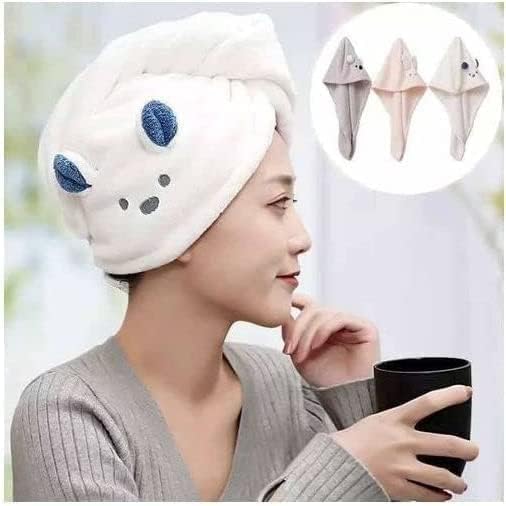 Generic - منشفة شعر من المايكروفايبر، عمامة للشعر المبلل والشعر المجعد، منشفة تجفيف الشعر، اذني الارنب فائقة الامتصاص بالوان متنوعة من قطعتين (دب)