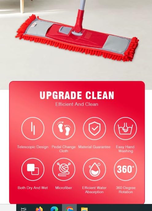 • 360° Rotatable Head: The mop head rotates 360 degrees, allowing you to easily reach and clean every corner and hard-to-reach area.