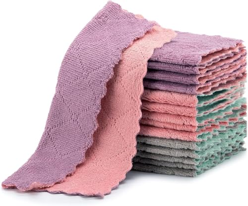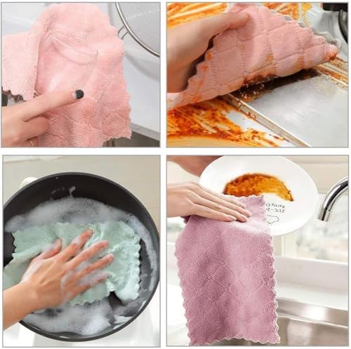 - Absorbent Kitchen Towels Are Made Of High Quality Coral Velvet, Thick Soft And Non-Stick, Lightweight, Strong Water Absorption And Dry Quickly. Classic dish clothes can quickly and effectively absorb liquids, wipe off oil stains, and have powerful pollutation abilities.