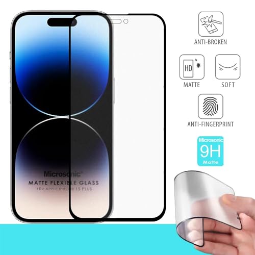 MICROSONIC - MICROSONIC Ceramic Matte Flexible Screen Protector for Apple iPhone 15 Plus - Black, 1 Pack