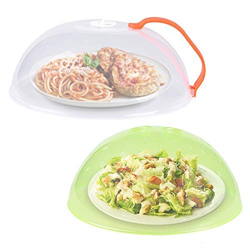 - Humanized Design: We provide 2pcs microwave plate cover for you to replace, one has a portable handle, another no handle but has grip on the top can easily lift as well. The microwave cover for food with steam vents on the top that help to heat food evenly .