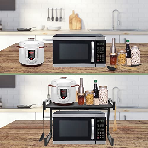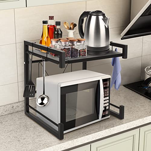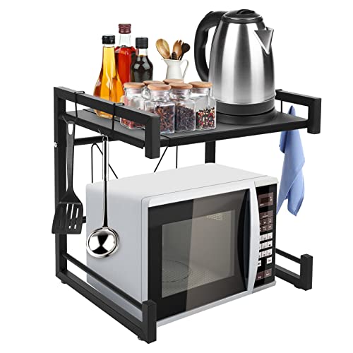 Ejoyous - Microwave Shelf, Expandable Microwave Holder, Microwave Stand, Baker's Shelves, Kitchen Shelf, Spice Rack, Extendable with 4 Hooks, for Kitchen, Wardrobe, Garage, Shower Room