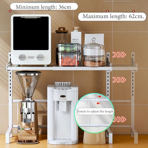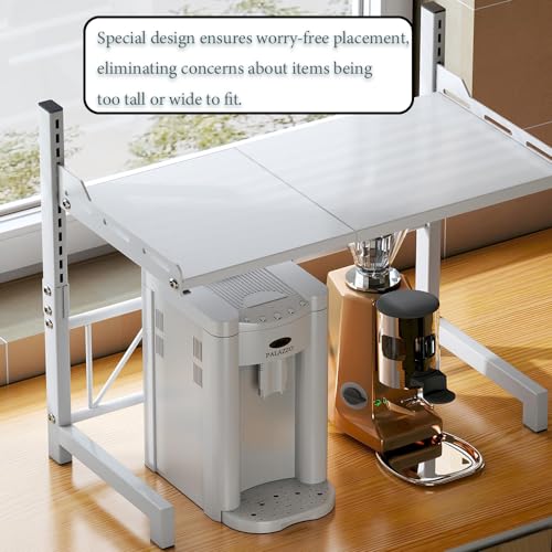 BSTHOK - Microwave Shelf Expandable Microwave Oven Rack Shelf Stand kitchen counter shelf unit wall mounted Desktop Printer Heavy Duty Storage Solution Organiser Stand Bakers Pot Pan Grill (White 3Tiers)