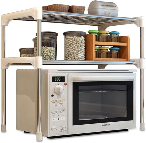 Generic - منظم رفوف الميكروويف للمطبخ متعدد الوظائف من 2 رف لسطح الطاولة ومحطة التوابل والقهوة وتخزين الأجهزة الصغيرة، موفر للمساحة وحديث، 1 قطعة