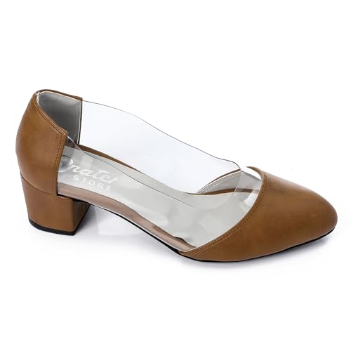 Generic - Mid Block Heels Pump Leather, Transparent Sides