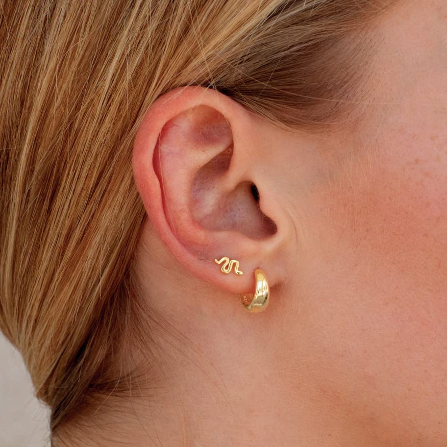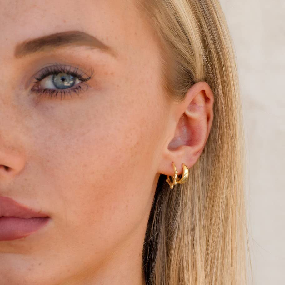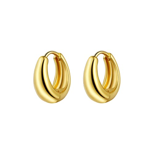 MIDEEO - MIDEEO Gold Tiny Cuban Chain Link Huggie Brass Hoop Earrings for Women