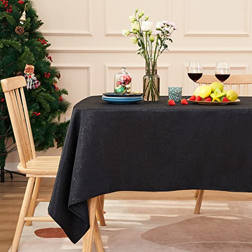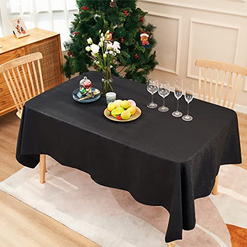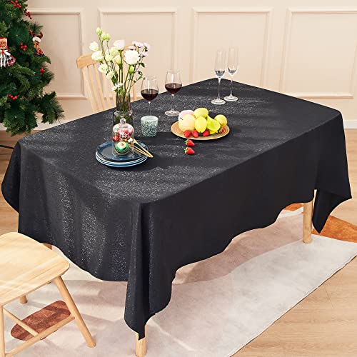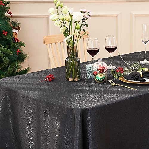 Midsummer Breeze - Sparkling Fabric Tablecloth Table Cover for Halloween Thanksgiving Christmas Holiday Party Banquet (Black, 55"x102", Rectangle/Oblong)