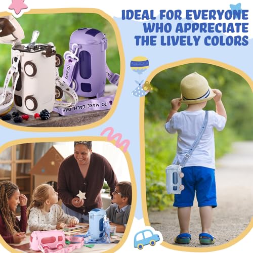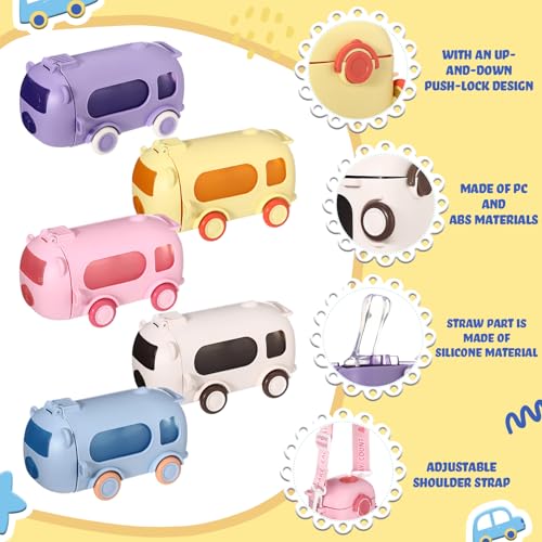 - 6 Pcs Bus Water Cups: this bus shaped water cup set includes five vibrant colors: 2 white, 1 blue, 1 yellow, 1 pink, and 1 purple water bottles, adding a splash of personality to your daily hydration routine; With choices that suit every mood, you're not just choosing a cup—you're making a style statement; Ideal for everyone who appreciate the lively colors
