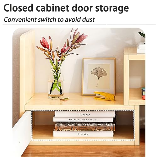 - Layered and diversified storage - The right side of the desktop bookshelf adopts a 3-layer design, with the top layer allowing for placement of ornaments, the middle and lower layers allowing for storage of commonly used items and books, etc. The left side has a 2-layer design, and the upper layer allows for placement of tabletop ornaments such as vases and photos. The layered and open design makes desktop storage beautiful and tidy.