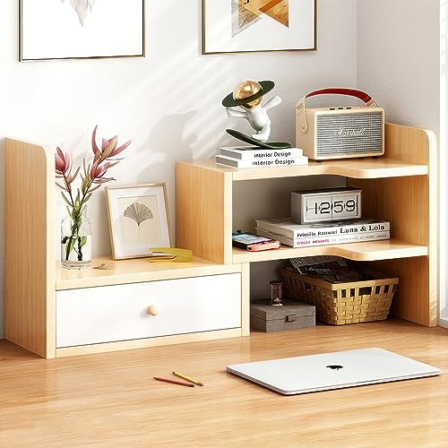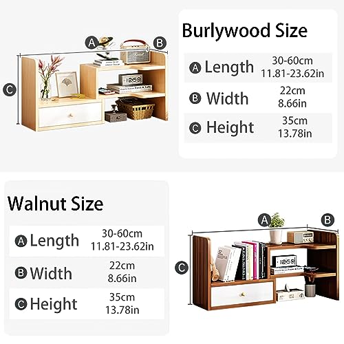 Migfena - Desk Shelf Organizer and Scalable Desk Bookshelf Wood Board Racks, Organizer Storage Stand, Wooden Desktop Bookshelf for Office, Dorm, School (Burlywood)