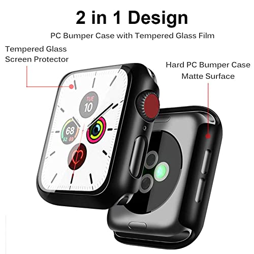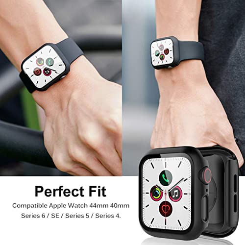 Miimall - Miimall [2 Pieces] Case Compatible with Apple Watch Series 6/SE/Series 5/Series 4 44mm, [Full Cover] PC Case +Tempered Glass Screen Protector for iWatch Series 6/5/4/SE 44mm -Black