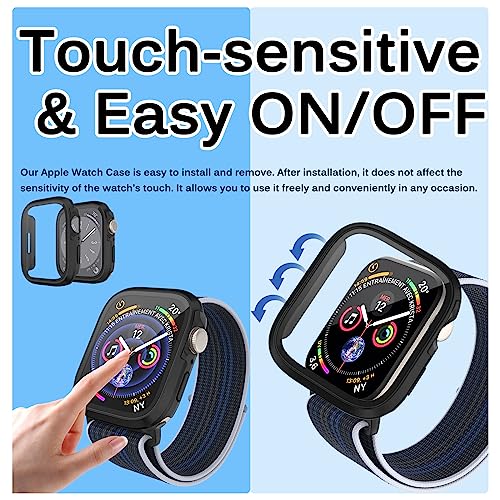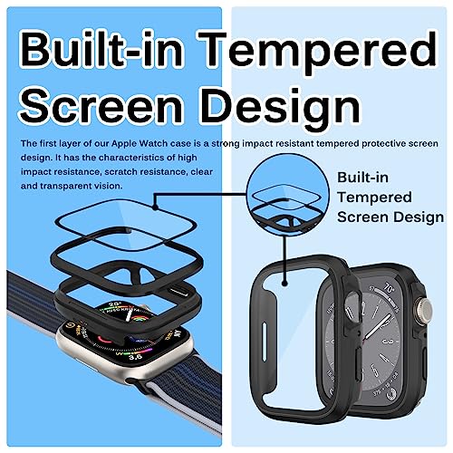 - 【تصميم شاشة مقوى مدمج】الطبقة الأولى من حافظة ساعة ابل الخاصة بنا هي تصميم شاشة واقية قوية مقاومة للصدمات. تتميز بخصائص مقاومة عالية للصدمات ومقاومة للخدش ورؤية واضحة وشفافة. لا يؤثر على حساسية اللمس. كما أن هناك وظيفة مضادة لبصمات الأصابع. يسمح لك باستخدام الساعة في أي مناسبة دون الخوف من التلف.