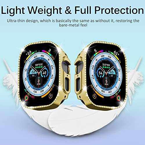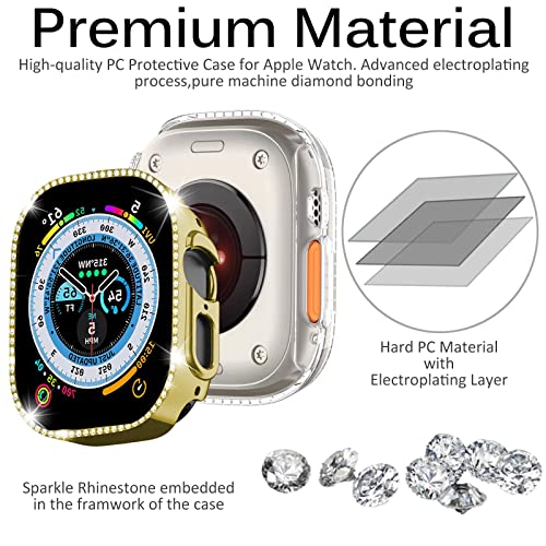 Miimall - Miimall Compatible with Apple Watch Ultra 49mm Bling Case for Women, Hard PC Frame Bumper without Screen Protector, Crystal Diamonds Shell Ultra Slim Protective Cover for iWatch Ultra 49mm-Gold