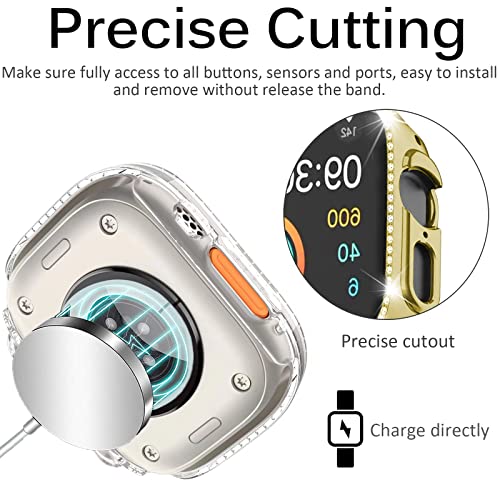 - [Bling Face Design] Luxurious diamonds cover the surface of the case and it shines bright especially in the sun or strong light. Instantly change the look of your Apple Watch Ultra 49mm. With advanced adhesive process, the rhinestones will never come off.