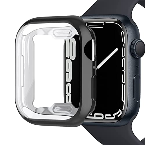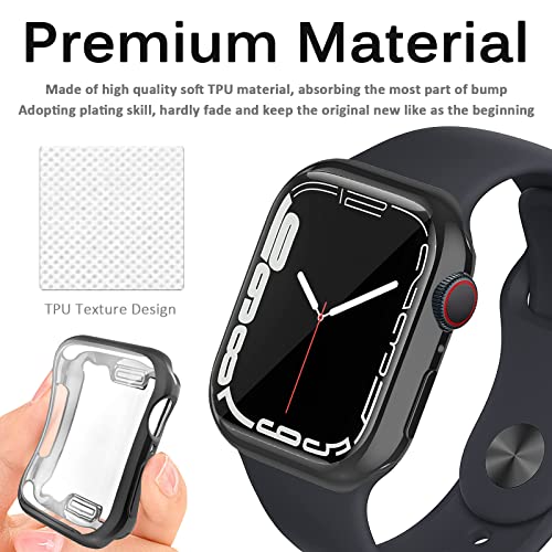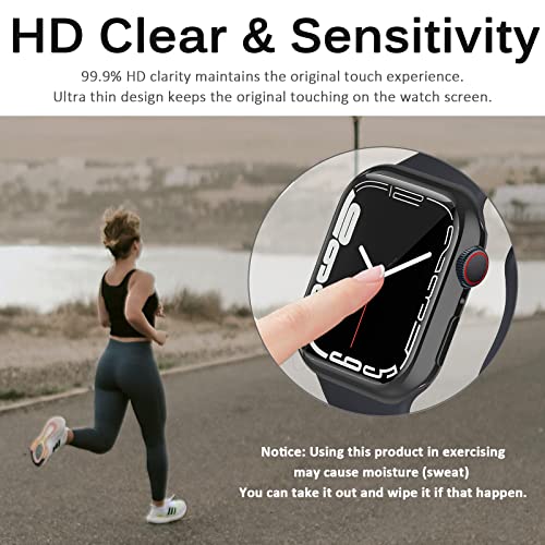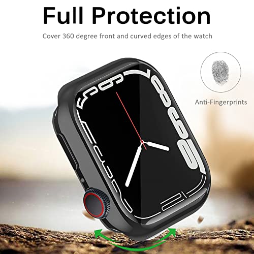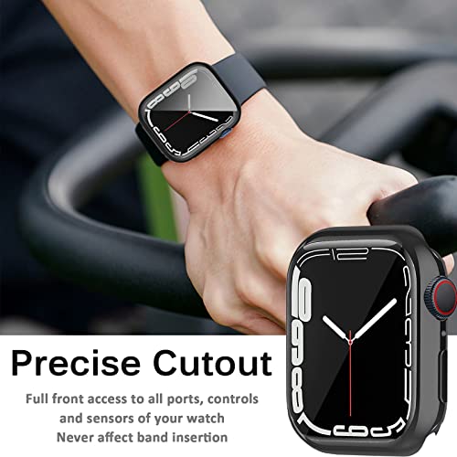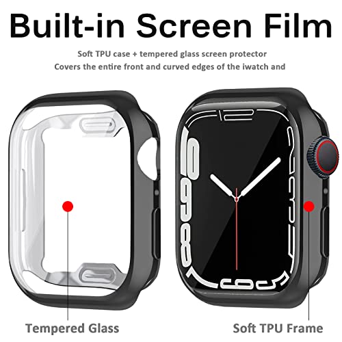 Miimall - Miimall for Apple Watch Series 9 45mm Case with Screen Protector Tempered Glass HD Clear Soft TPU Cover Scratch Resistant All-Around Protective Shell Case for iWacth 9/8/7 45mm Black