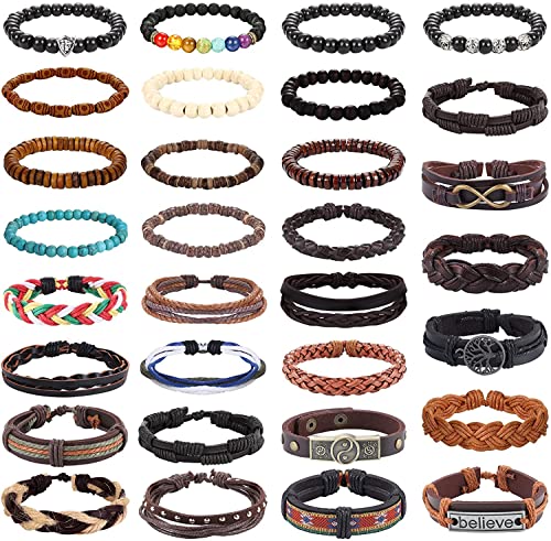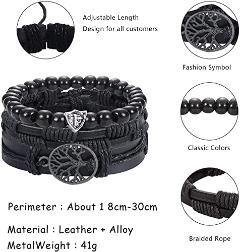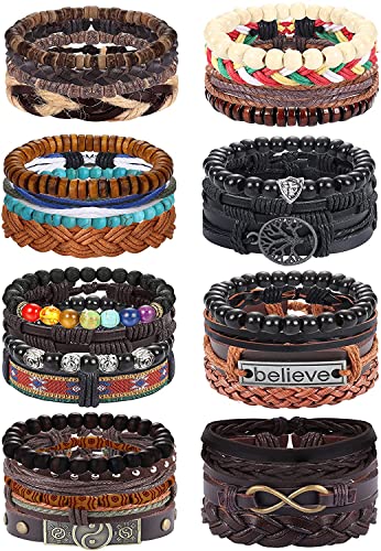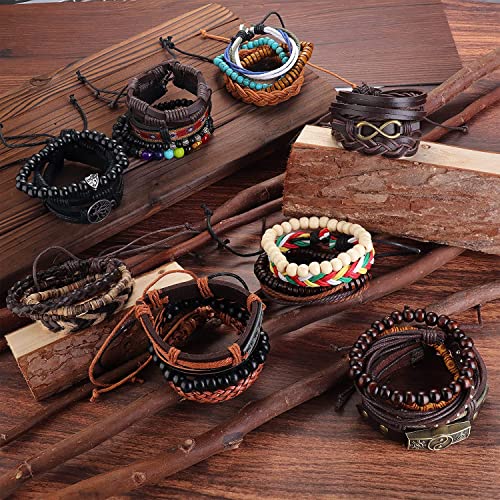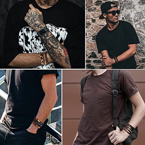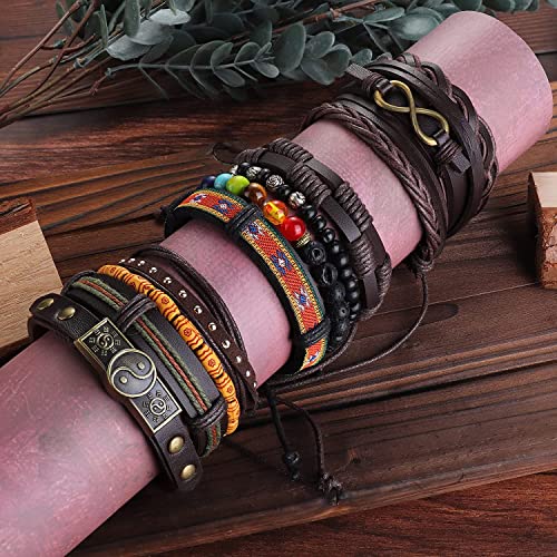MILACOLATO - اساور جلد للرجال والنساء بتصميم مضفر قابل للتعديل من ميلاكولاتو 13 قطعة منسوجة باسلاك يدوية وخرز الخشب قابلة للتكديس واللف حول المعصم اسود وبني
