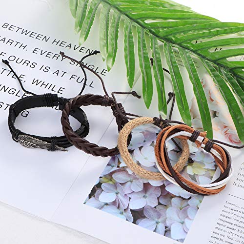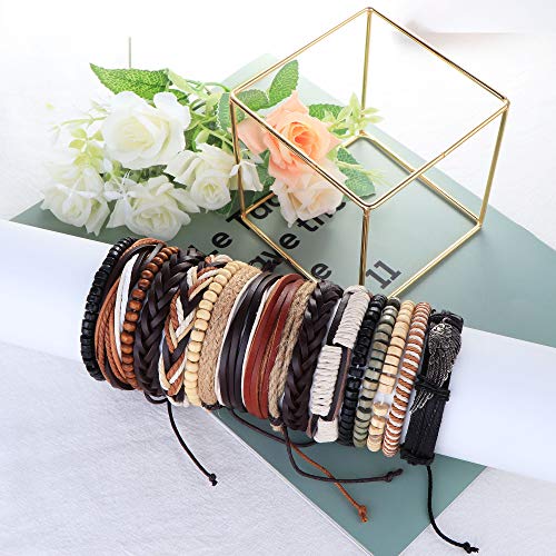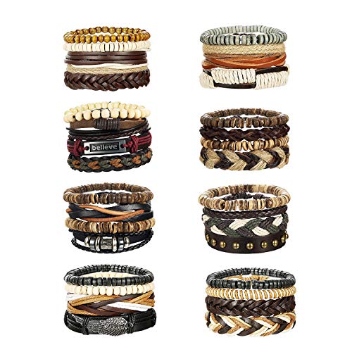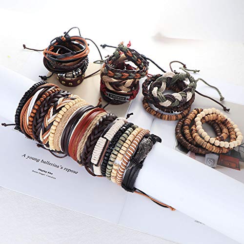 MILACOLATO - MILACOLATO 32 Pcs Braided Leather Wooden Beads Bracelets for Men Women Unisex Multilayer Tribal Leather Adjustable Bracelet Cuff Wrap Multicolor Rope Wristband