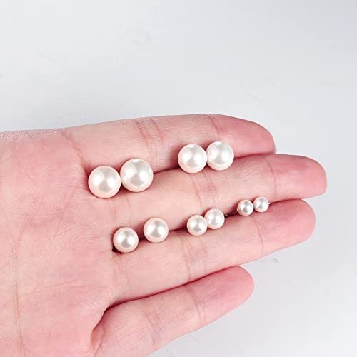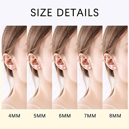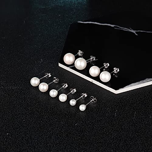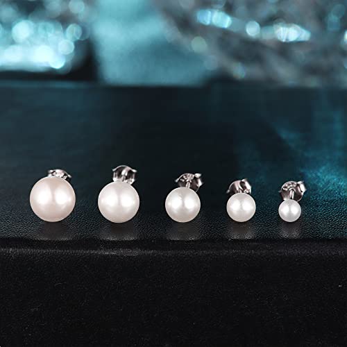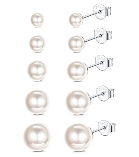 MILACOLATO - حلق صغير بريمة مرصع باللؤلؤ المياه العذبة الرقيق من الفضة الاسترليني 925 للنساء والبنات ميلاكولاتو - 5 ازواج أبيض ال اي سي