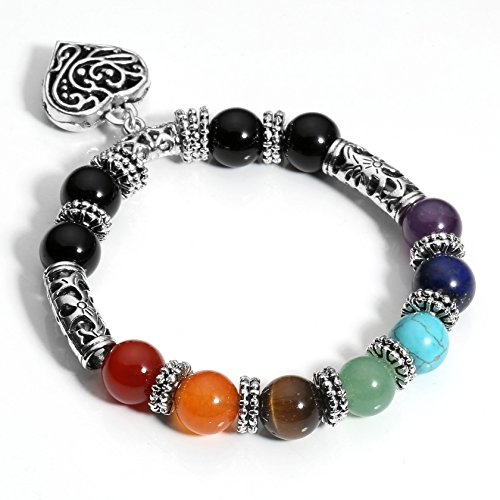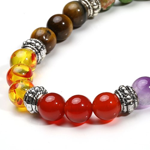 MILAKOO - MILAKOO 7 Pcs 8mm Lava Rock 7 Chakras Beads Bracelet Elastic Natural Stone Yoga Bracelet Bangle, 7.5 inches, Stone, No Gemstone