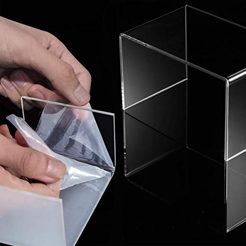 Milaloko - Clear Acrylic Display Risers, Pack of 4 Display Cabinets for Figures, Buffets, Cupcakes and Jewellery Stands, with Sticky Protective Film