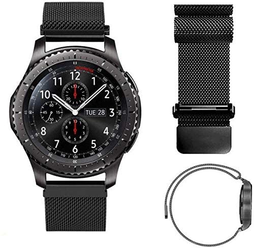 Generic - ميلانيس حلقة شبكة الفولاذ المقاوم للصدأ ووتش مع قفل المغناطيس لسامسونج جير S3 الحدود / الكلاسيكية، أسود، للكبار من الجنسين عدد 1