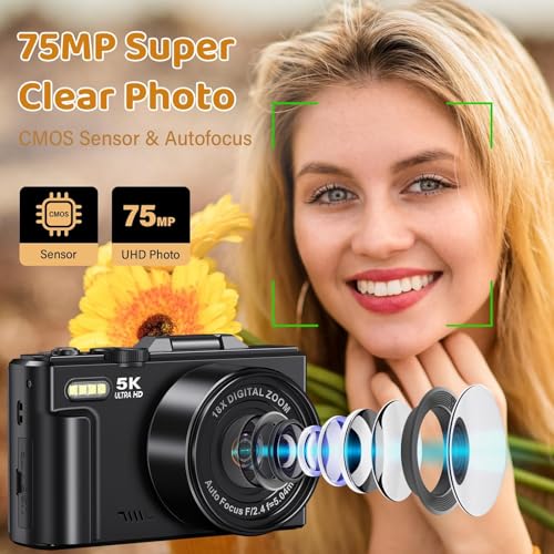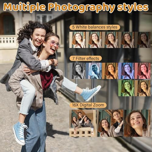 - SHOOT DECENT IMAGES WITH EASE - The digital camera captures high-clarity FHD 1080P videos and 44MP photos with the newest CMOS metering system, no need for complicated manual settings while delivering natural color images automatically. One second to press the shutter, it's easy for starters and kids.