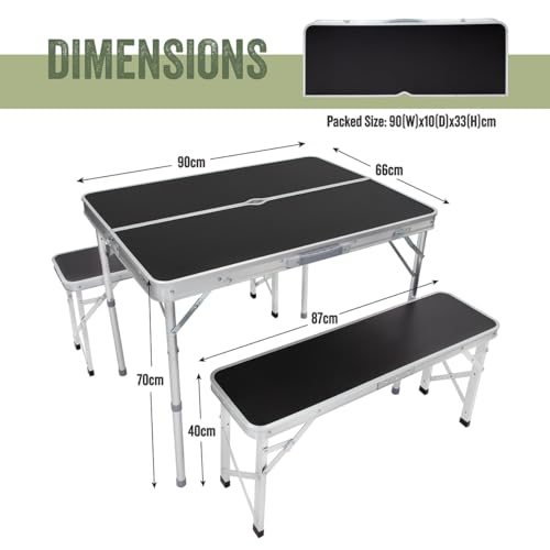 - تصميم قابل للطي - تتميز المجموعة بتصميم هيكل قابل للطي بحيث يمكنك فتحها بسرعة والاسترخاء دون فوضى. مقاس الطاولة: (طول) 90 × (عرض) 66 × (ارتفاع) 70 سم. مقاس المقعد: (عرض) 87 × (طول) 25 × (ارتفاع) 40 سم. حجم العبوة: (طول) 10 × (عرض) 90 × (ارتفاع) 33 سم.