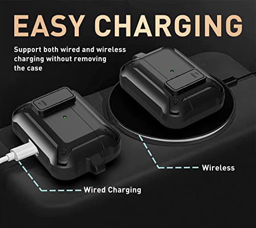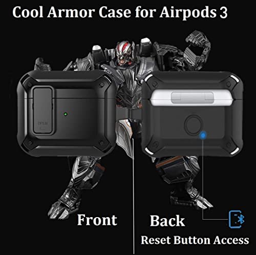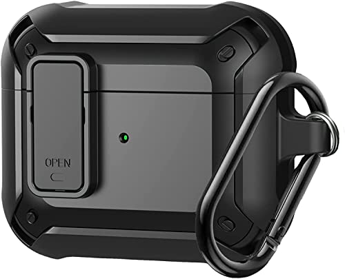 Generic - Military Armor Full-Body Rugged Hard Case with Secure Lock Clip and Keychain for Apple AirPod 3, Wireless Charging (Black)